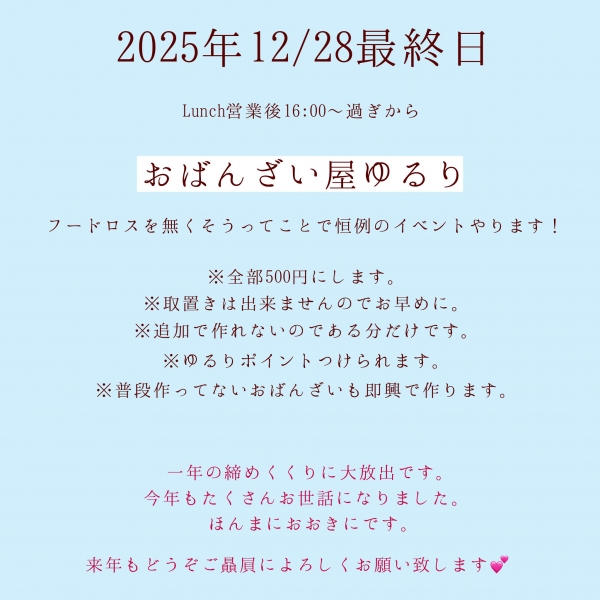 (土日祝は通常営業です✨売切次第closedとなります。)